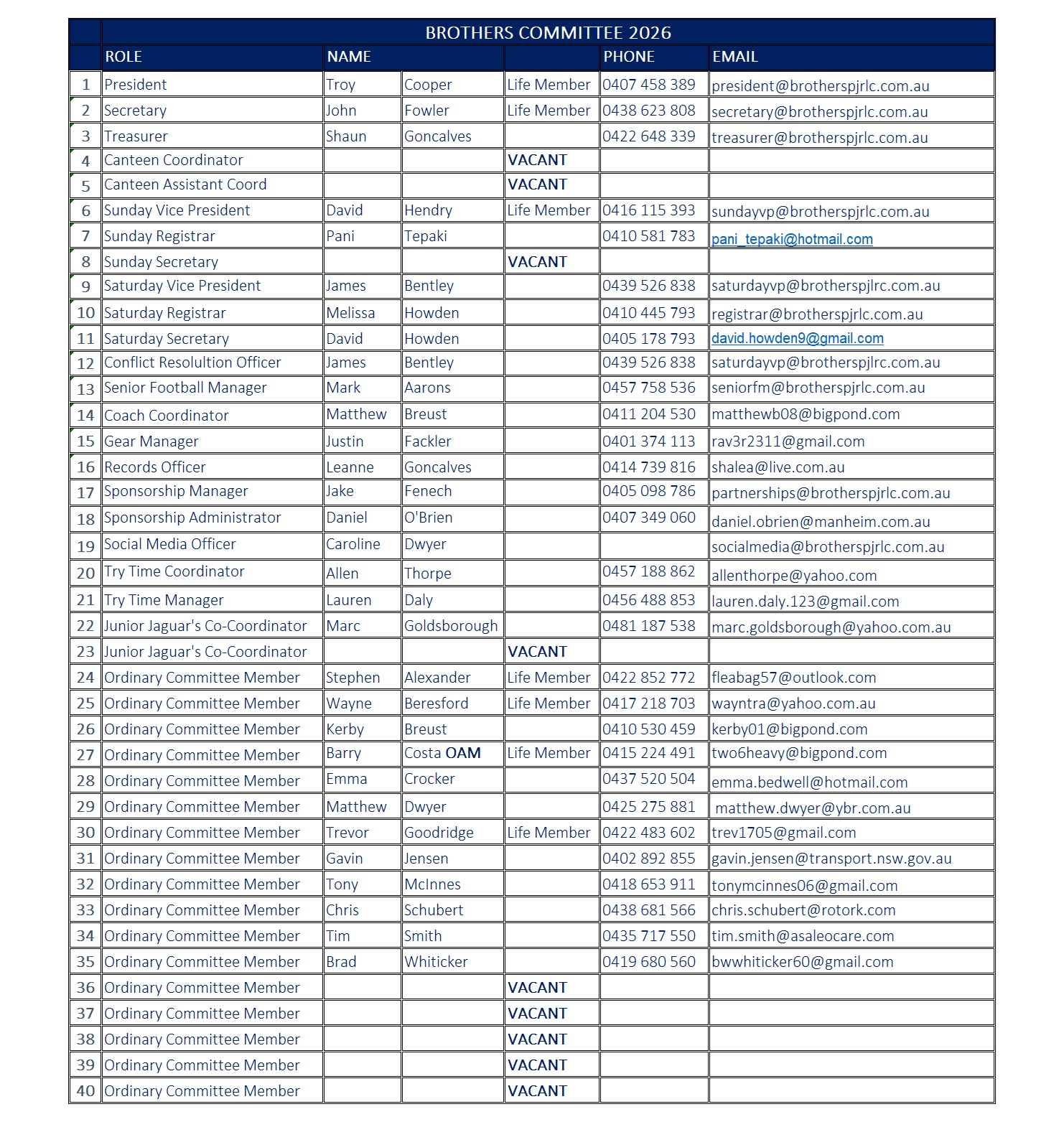 From its humble beginnings, when the Club entered 4 teams in the 1968 season, St Dominic’s had grown to be one of the largest junior rugby league clubs in the Penrith district; and in fact one of the largest junior rugby league clubs in the world. In 2003 the Club changed it name from St Dominic’s Junior Rugby League Club to Brothers Penrith Junior Rugby League Club Incorporated, In the 2023 season had 49 sides entered in the district, with these sides ranging from under 6’s up to Open Men, additionally Brothers entered 2 teams in NSWRL Major Competitions being Sydney Shield and Ron Massey Cup
