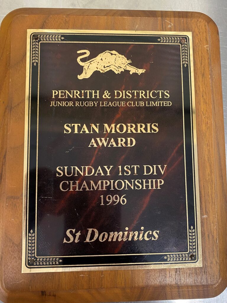PENRITH & DISTRICTS JUNIOR RUGBY LEAGUE CLUB LIMITED -STAN MORRIS AWARD-SUNDAY 1ST DIVISION CHAMPIONS 1996